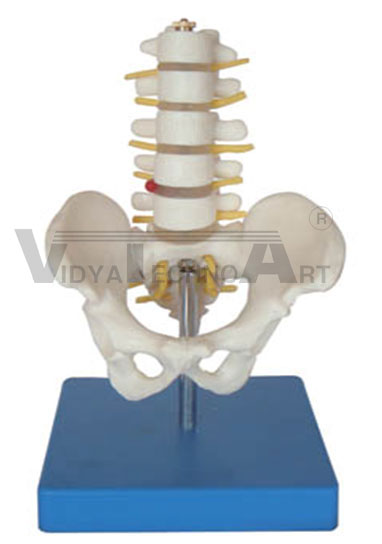 Consisting of hip bone, sacrum with coccyx and 5 lumbar vertebrae. Mounted on a base.