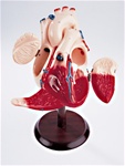 Twice the size of a human adult heart to show detail and facilitate study ? Three hinged portals allow full access to heart chambers and valves ? Attached portions of trachea and esophagus demonstrate their relationship to major vessels ? Unbreakable vinyl model fully rotates on wooden pedestal, or lifts off for pass-around viewing ? 100% American Made - authentic hand-painted detail is proudly signed and dated by its crafter - Autographed Anatomy exclusive to Denoyer-Geppert