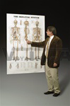 The chart contains the classic skeletal illustrations by Peter Bachin. It shows anterior, lateral, and posterior views of the skeletal system and illustrates portion of long bone, auditory ossicles, ligaments of the right hand (dorsal and palmar views), ligaments of the right foot (dorsal and plantar views), and the right knee joint (anterior and posterior views).